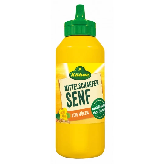 Unser klassischer, mittelscharfer Senf mit der Kühne-typischen Würzung und der extracremigen Konsistenz. In der praktischen 250ml Squeeze Flasche ist er ideal zum Würzen und Verfeinern aller Speisen und eignet sich bestens für Grillpartys oder Picknicks.